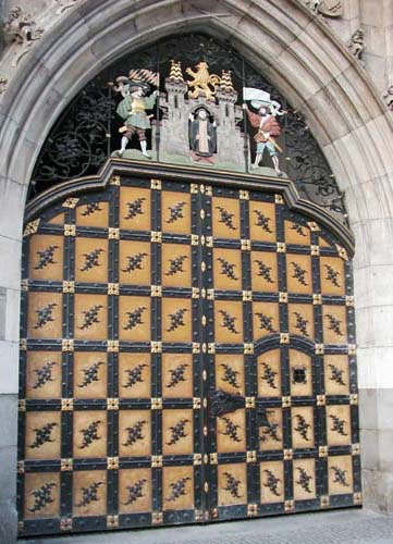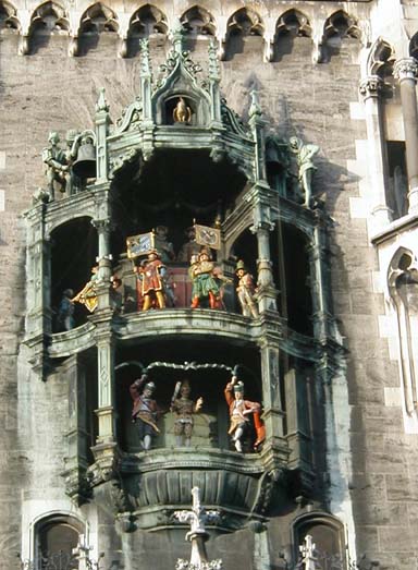 in the New Town Hall chimes into motion three times a day, with mechanical