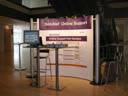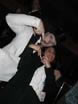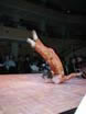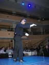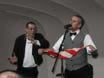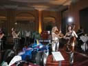 At dinner, the quartet continued to play. The program promised entertainment between each course: magicians, clowns, a robotic dancer, and "a rubber lady." She started the entertainment off and nothing topped it. Very bizarre to see a contortionist between the salad course and the entree. As we ate, performers wandered around disguised as waiters, playing tricks. As one of the few females, I was harassed fairly often, but it was fun. After dinner, we returned to the game room for after dinner drinks, very unkind considering how early the conference began the next morning. The musicians made a third costume change and played until the last of us were gone. |