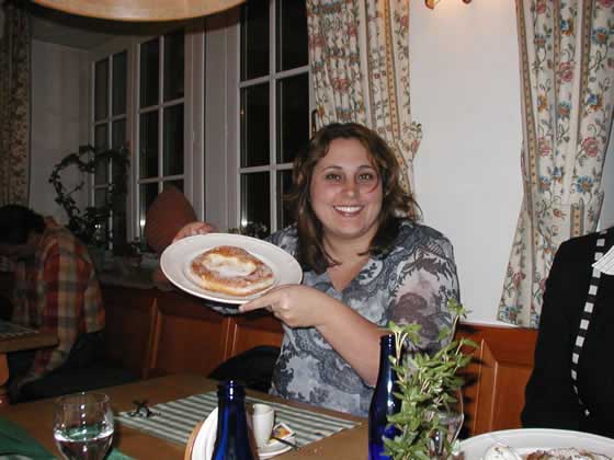 Heidi shows off her dessert, a Bavarian doughnut.